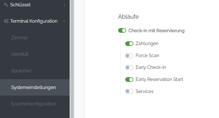 Am Kiosk unter Systemeinstellungen beim Punkt Abläufe den Early Check-in deaktivieren und den Punkt Early Reservation Start aktivieren. Dann werden die eingestellten Checkin- und Checkoutzeiten im Kiosk nicht berücksichtigt sondern die Zeiten aus der Reservierung genommen.